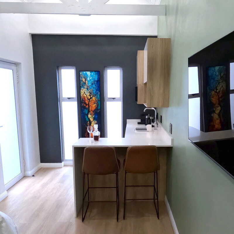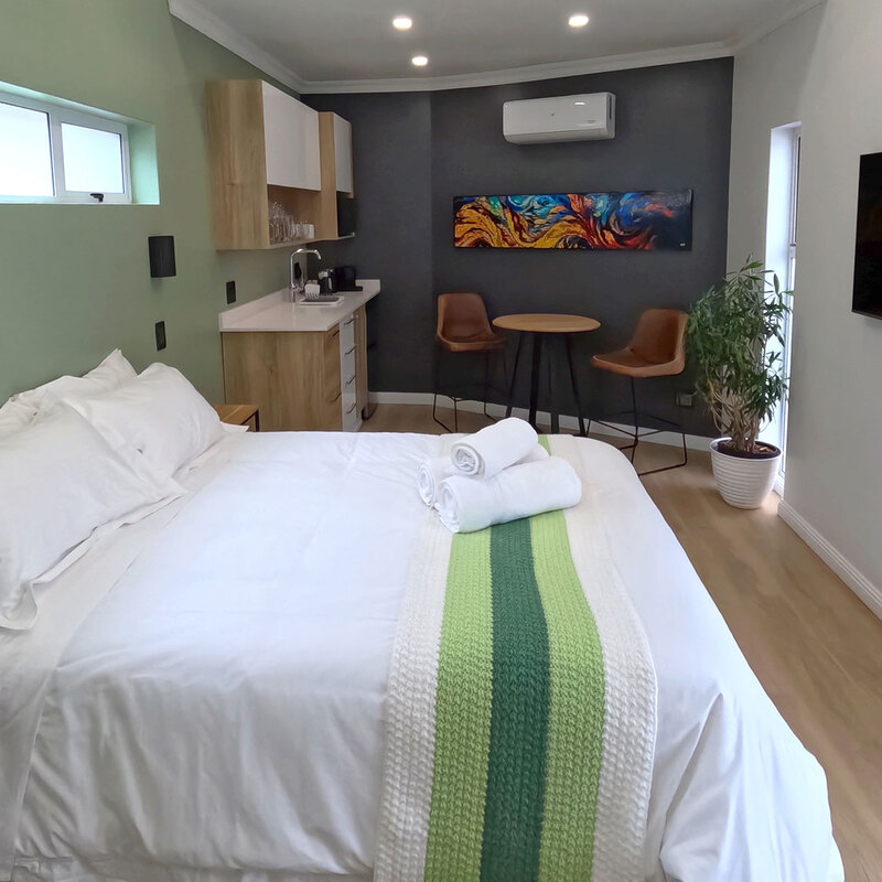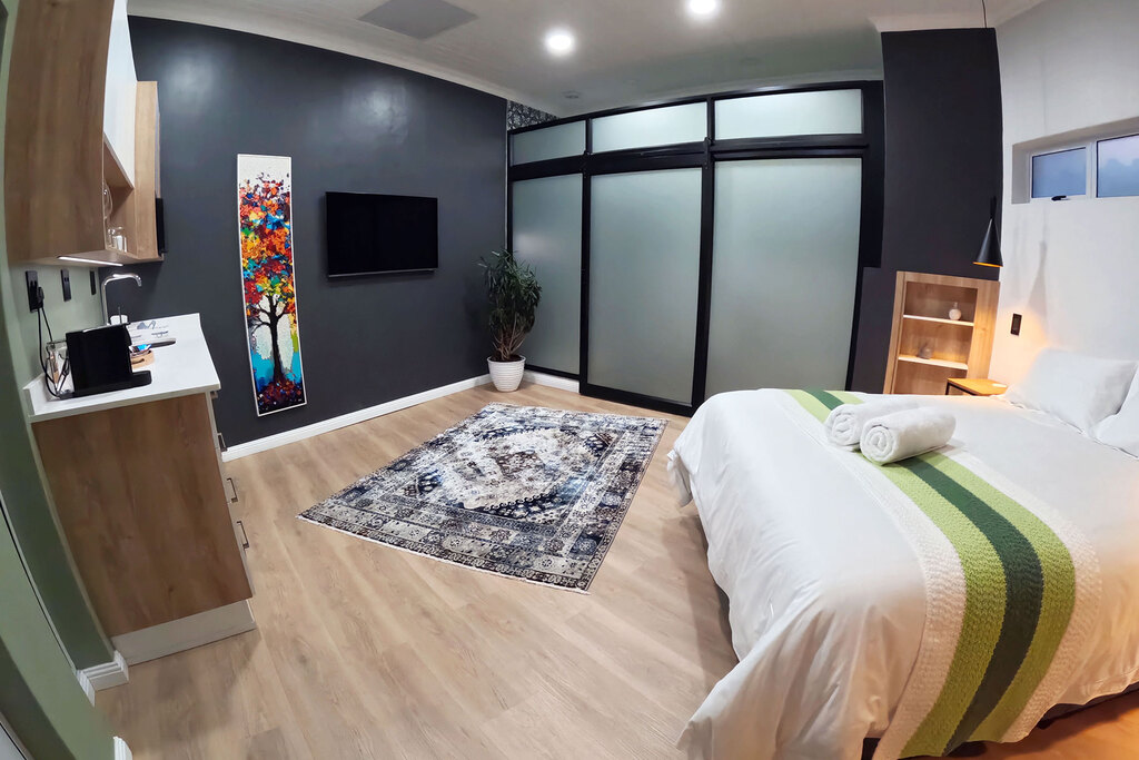Experience the ultimate in modern luxury with Unit 1, a beautifully designed self-catering suite perfect for couples or solo travelers. Enjoy a plush extra-length queen-size bed, a fully equipped kitchenette, and contemporary finishes throughout. Whether you’re here for a romantic getaway, business trip, or quiet retreat, Unit 1 provides the ideal balance of comfort and convenience. Stay connected with free high-speed Wi-Fi, relax in air-conditioned comfort, and take advantage of complimentary on-site parking.