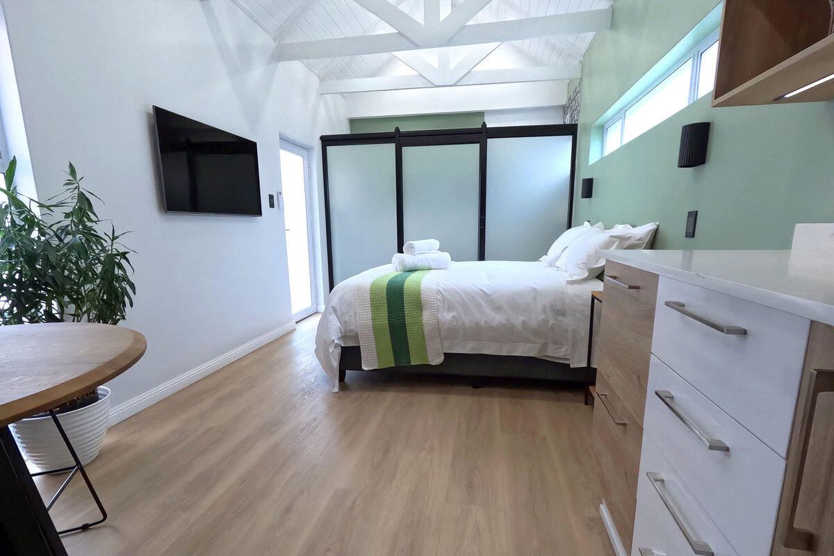 Discover effortless elegance in Unit 2, a tranquil escape offering all the comforts of home with a touch of sophistication. This modern unit features a luxurious queen-size bed with extra length, a sleek kitchenette equipped for self-catering, and premium finishes that invite relaxation. Perfect for couples or solo guests seeking a peaceful retreat, Unit 2 includes free Wi-Fi, air conditioning, and secure parking — everything you need for a restful, rejuvenating stay.